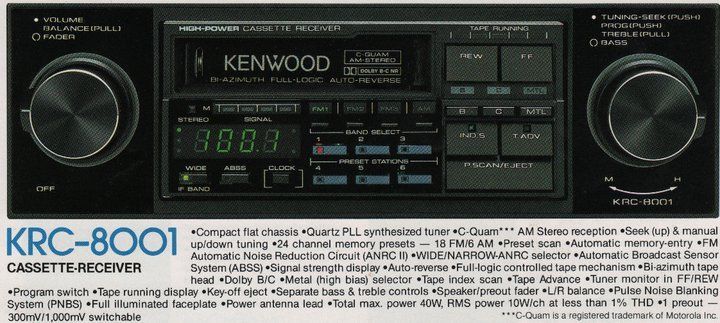 Kenwood KRC-8001 - Narrow/Wide Bandwidth selection; switchable 9 or 10 kHz AM channel spacing (for world-wide use)